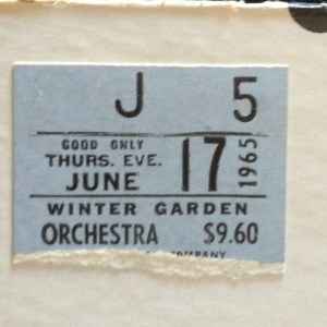 Sometime in 1999 or 2000, I saw a “Funny Girl” original record up for auction at Amazon.com. Do you remember when Amazon had an auction section? The seller described it as a unique item that included one ticket stub and autographs from Barbra Streisand and Sydney Chaplin. However, it was the ticket that called my attention. It was for the evening performance of June 17th, 1965, a Thursday evening, 10 days before the day I was born.